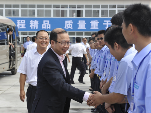 7月23日,中国建筑工程总公司董事长、党组书记,中国建筑股份有限公司董事长易军一行来到中建六局开展年中工作和党的群众路线教育实践活动基层调研。工程局领导班子成员、局总部相关部门负责人和基础设施事业部、桥梁公司主要领导参加相关活动。