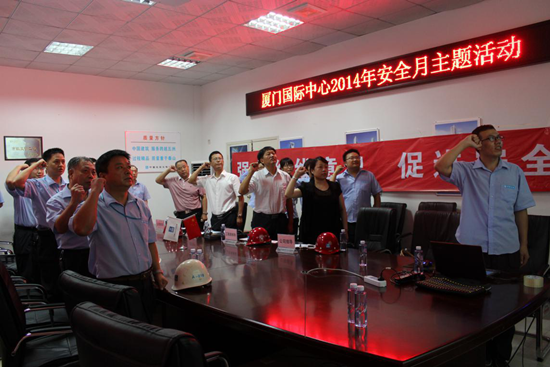 信群一行听取了公司安全质量环境部经理孙洪成关于“2014年安全月主题活动”策划及活动开展情况的汇报,一同参加了项目部安全生产月宣誓活动、观看了安全用电教育影视片,对该项目组织的安全谜语有奖竞猜、安全知识竞答、宣誓等活动给予了充分肯定。他认为,建设发展公司组织开展的安全月主题活动形式多样,参与度高,既丰富了项目业余生活,又提高了员工安全知识储备和安全技能,希望该项目能结合“安全月主题活动”载体,积极克服工程结构超高、施工难度大,技术要求高等不利条件,做好安全生产等各项工作。