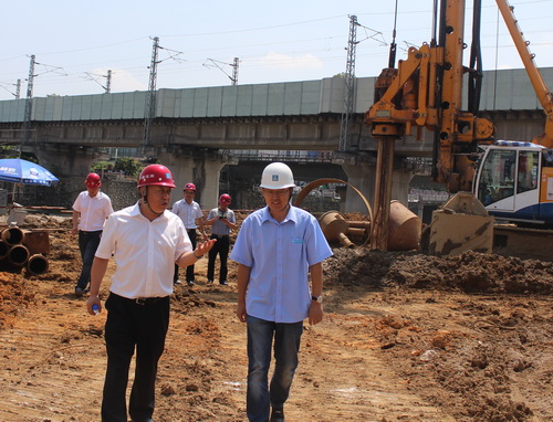 7月10日,中建六局副总经理巩汉波一行到桥梁公司龙岩大道高架桥项目视察指导工作。 巩汉波一行深入主塔工区施工现场,详细了解了项目施工进度,查看了旋挖钻施工情况,并仔细询问了施工区域的拆迁进度,同时要求项目部要积极对接政府有关部门,尽快落实拆迁问题。(杨晓娜)