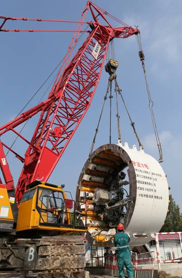 8月13日,中建六局首台盾构机——“守正一号”在天津地铁6号线工程土建施工第R1合同段徐庄子站正式吊装下井。 徐庄子站—金钟河大街站盾构始发井工程长12.5米、宽24.7米、深18.1米。此次吊装采用双机抬吊,SCC2500C型履带吊,徐工QAY160吨汽车吊辅助溜尾。吊装过程安全、顺利、稳定。 据悉,“守正一号”盾构机将于8月底组装、调试完成,预计9月初始发,并将担任天津地铁6号线徐庄子站至金钟河大街区间右线的隧道施工,隧道总长度为2174.8米。(张乾)