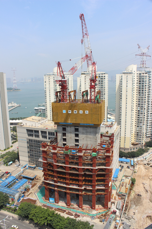 近日,由中建六局建设发展公司承建的海西第一高楼——厦门国际中心项目主塔楼核心筒施工至21层,建筑高度达101.75米,成功突破百米大关。 该项目毗邻厦门海湾公园和国家5A级旅游胜地鼓浪屿,地处厦门西海域旅游经济带的起点,建筑面积为15.45万平方米,地上61层,主塔楼建筑总高度339.88米, 是目前在建的福建省第一高楼,集超甲级写字楼、单元式办公、高档会所、观光等为一体的综合楼,建成后将成为厦门市、福建省乃至东南沿海的新地标。(闫鹏)