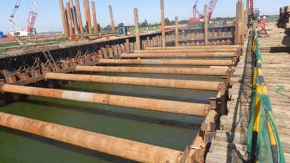 9月8日下午,随着最后一根钢板桩的插入,中建六局地铁公司蓟汕高速公路项目海河特大桥21#主墩围堰顺利合拢。 此次围堰为63.4m×16.8m的平行四边形,尺寸大、深度高,施工难度大。该围堰主体采用日本产SKSP-SX27型拉森Ⅵ型钢板桩,在四角设置转角桩,拉森钢板桩单根长22m,单根有效宽度60cm,整体一共插入272根拉森钢板桩。 21#主墩围堰的顺利合拢,为后续海河特大桥下部结构的施工提供了良好的作业面,保证了海河特大桥的整体进度,为项目一线施工人员积累了丰富而宝贵的围堰深基坑施工经验。(侯本茂)