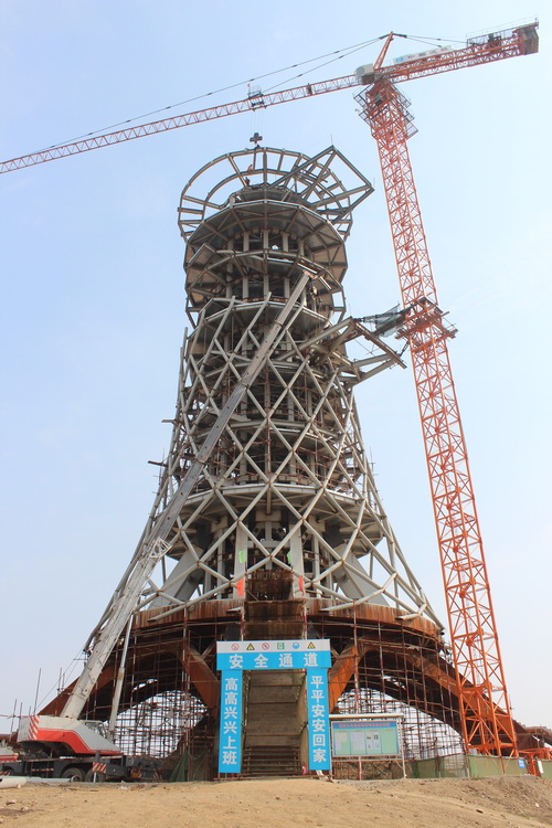 随着第十七层钢结构框架的最后一根钢梁顺利完成安装就位,中建六局安装公司烟台福莱山公园景观塔主体结构如期封顶。封顶后的塔身结构距地面垂直高度定格为55.6米,用钢量达2500余吨。 目前项目正陆续开展外围网壳、玻璃幕墙、室内装饰装修等方面的施工工作。项目部将继续严抓安全质量不放松,做好文明施工,全力加快后续项目建设,确保景观塔项目如期竣工,实现项目的完美履约,为烟台市早日增添一道亮丽的风景线。(许远球)