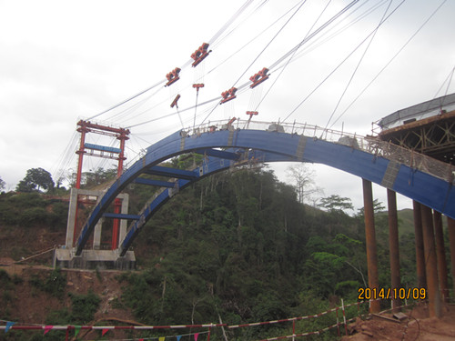 10月4日,刚果(布)国家1号公路LOUKOUNI大桥钢箱拱拱肋顺利合龙。 刚果(布)国家1号公路LOUKOUNI大桥主桥为1跨86米上承式拱桥,主拱矢高14.5米,矢跨比1/5.931,主拱肋为等截面矩形钢箱结构。此桥是刚果(布)首座单跨跨径最大、技术难度最高的钢结构桥梁,也是中建系统首次采用缆索吊装方法施工的桥梁。 此桥的施工受到刚果(布)政府的高度重视,刚果(布)大工委曾多次到施工现场观摩大桥的施工,总统萨苏将其列为重点工程。LOUKOUNI大桥钢箱拱拱肋的顺利合龙彰显了中建六局在海外施工大型且技术复杂桥梁的管控能力。(刘鹏)
