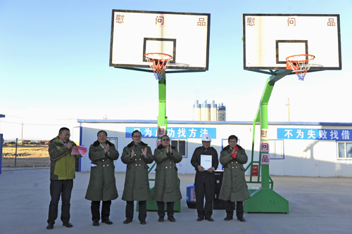 16日,刘杰代表总公司向项目部赠送了净水装置、篮球架等慰问品,并分别为项目四支青年突击队授旗。授旗仪式上,刘杰对项目员工在项目进场时积极克服无路、无水、无电、无人烟、无通讯的恶劣环境而奋力拼搏给予高度肯定,并要求项目青年职工一是要敢于争先,争做工程建设的突击队;二是要勤于学习,不断提升自身能力;三是要志存高远,向着远大目标迈进。