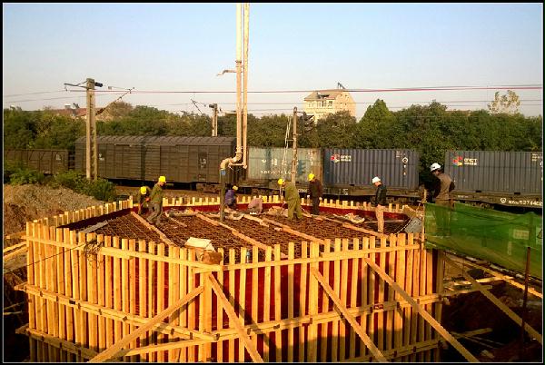 11月19日下午,中建六局铁路公司武汉大花岭货场下行线特大桥转体梁下承台浇筑成功。大花岭下行线特大桥全长1730.90m,转体梁与营业线夹角39°,总重量为2350吨,承台中心与京广铁路线间距仅为6.85米,此施工段京广线最高行车速度160公里/小时,每天有200多趟列车呼啸而过。承台作为转体梁主要承重结构,同时承担转体梁转动枢纽的重任,可谓转体梁的“小蛮腰”。它首次浇筑成功,为后续的转体结构施工奠定了坚实基础。(向宇平)