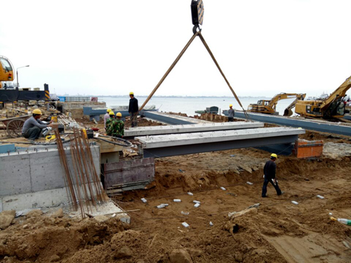 广州湾大道旧栈桥属于南沙巡防区军用码头,后经协调,于2016年11月24日被拆除。经过一个多月的努力,项目部完成了旧栈桥对接主桥和主桥最后一跨主体结构施工的艰巨任务,获得了业主的充分肯定,也标志着湛江市观海路一标段项目进入最后阶段收尾工作。