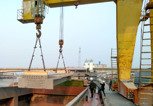 首批预制梁装船运输为高架桥的全面施工夯实了基础。(雷鲁飞)