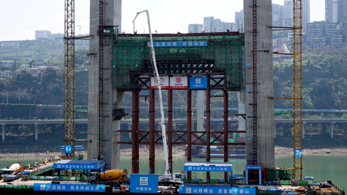 近日,在大功率泵车的阵阵轰鸣中,桥梁公司红岩村嘉陵江大桥P3主塔中横梁完成第四次混凝土浇筑,中横梁施工完成。