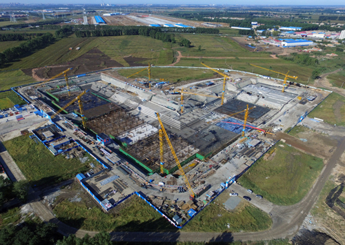 中建六局中建桥梁现代物流大厦项目底板混凝土浇筑施工快速推进,上周陆续完成办公楼A区塔楼底板(3690m³)、B区塔楼底板(3603m³)、B1底板(1026m³)、C4底板(2111m³)混凝土浇筑,合计10430m³,实现周产值约1250万元。