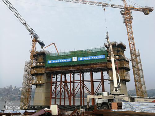 9月15日,泸州长江二桥顺利完成西岸索塔下横梁混凝土浇筑。