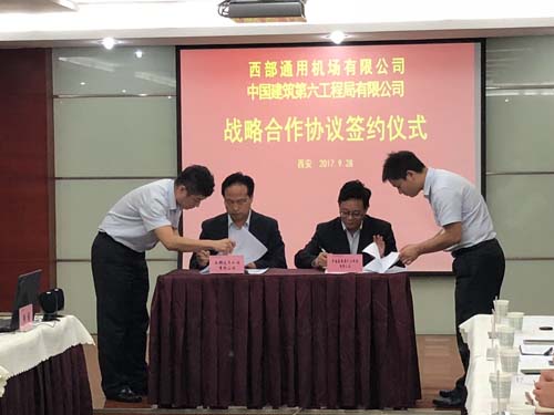 9月28日,中建六局与西部通用机场有限公司PPP模式战略合作协议签订仪式在陕西西安举行。工程局工会主席、董事会秘书罗劲松代表中建六局与西部通用机场有限公司总经理阎雷共同签署了机场及配套基础设施PPP项目战略合作协议。