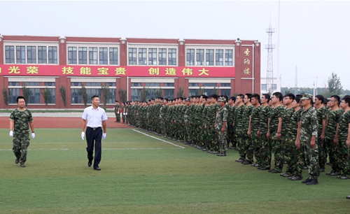 闭幕式开始前,在室外举行了庄严的升国旗仪式,在场领导和新老员工高唱国歌,雄浑嘹亮的歌声在操场上空回响,场面蔚为壮观。随后,孙立新检阅了军训成果,他对新员工分列式表演、军体拳表演所展现出的精神面貌和昂扬斗志给予高度评价,并向全体教官的辛勤付出和新员工们经受的严峻考验表示崇高敬意。